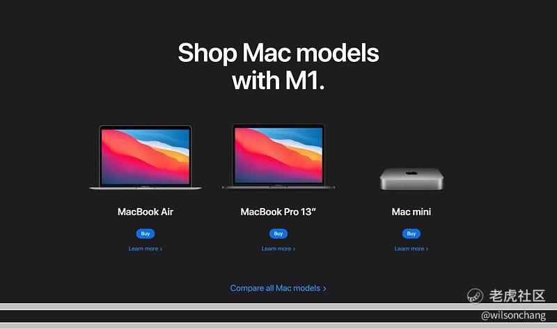 圖:蘋果公司官網截圖,搭載M1芯片的三款設備MacBook Air,MacBook Pro13和Mac Mini