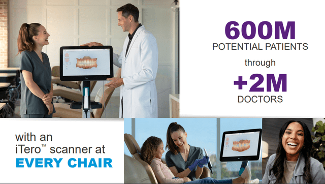 Align has a large total addressable market (TAM), after all, everyone needs a dentist, right? When we look at the following slide of the earnings presentation, we can see that Align believes that there are currently 600 million potential patients out there with 2 million doctors that could use their products, this includes an Itero scanner at every chair.