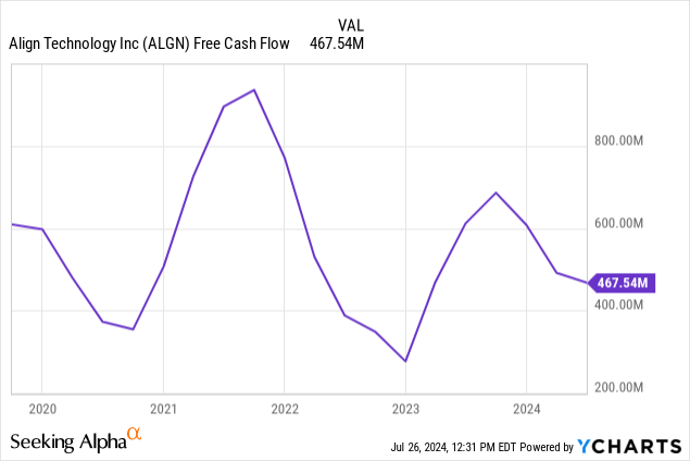 Nonetheless, revenue growth must accelerate and preferably the average aligner case shipment revenue goes up again as well. While Align has the potential to be a quality compounder for the next decade, they have to regain the trust of investors again.