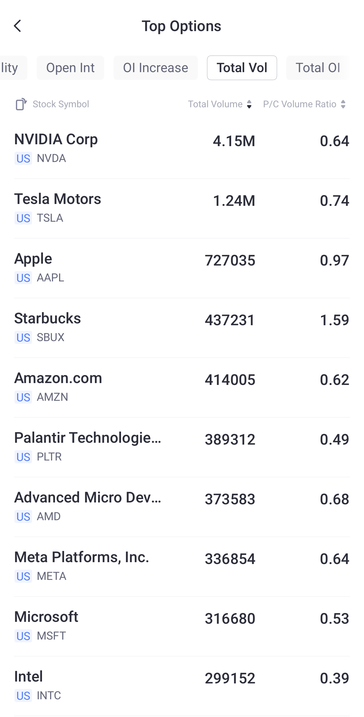 Top 10: $Nvidia(NVDA)$, $Tesla(TSLA)$, $Apple(AAPL)$, $Starbucks(SBUX)$, $Amazon(AMZN)$, $Palantir(PLTR)$, $AMD(AMD)$, $Meta(META)$, $Microsoft(MSFT)$, $Intel(INTC)$