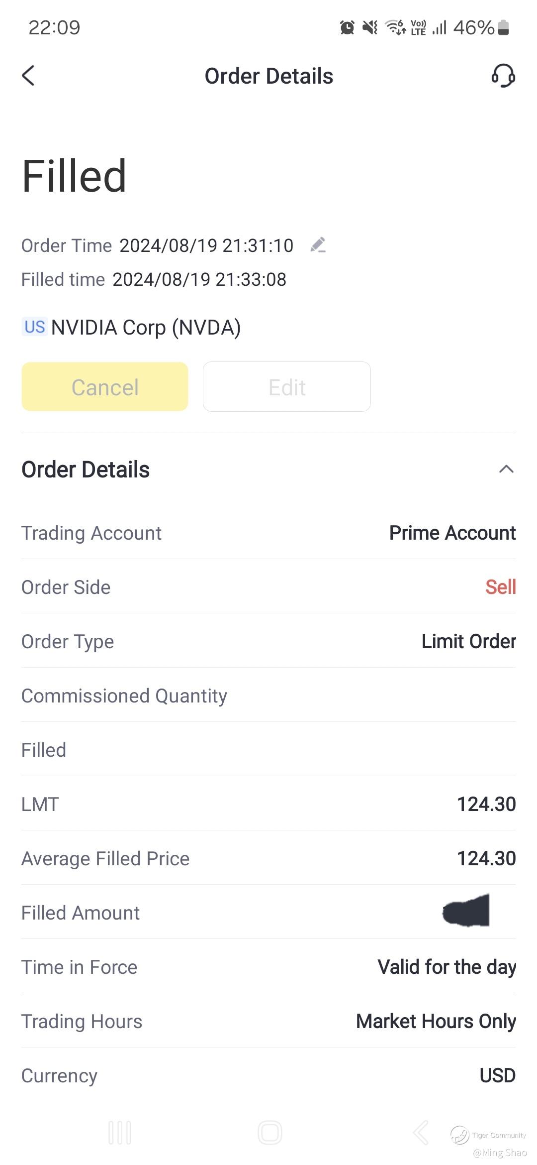 I bought Nvidia at $119 after averaging down. I held on when it fell below $100.