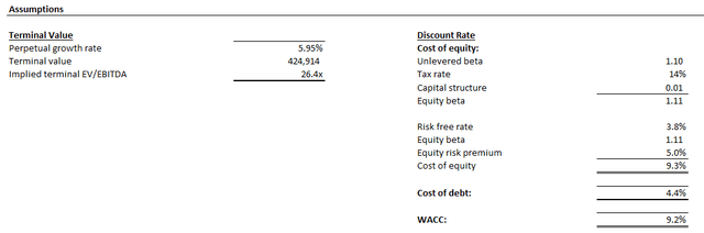 The price target is derived from the discounted cash flow approach, and considers cash flow projections taken with the base case fundamental analysis discussed in the earlier section. A 9.2% WACC in line with AMD’s risk profile and capital structure is applied. The analysis also considers a perpetual growth rate of 6.0% applied to projected 2028E EBITDA in determining AMD’s terminal value. The premium valuation assumption is consistent with the application of a 3.5% perpetual growth rate on projected 2033E EBITDA when AMD’s growth profile is expected to normalize in line with the higher-range pace of estimated economic expansion. The assumption applied is also reflective of AMD’s mission-critical role in enabling next-generation growth technologies critical to economic expansion across its core operating regions.