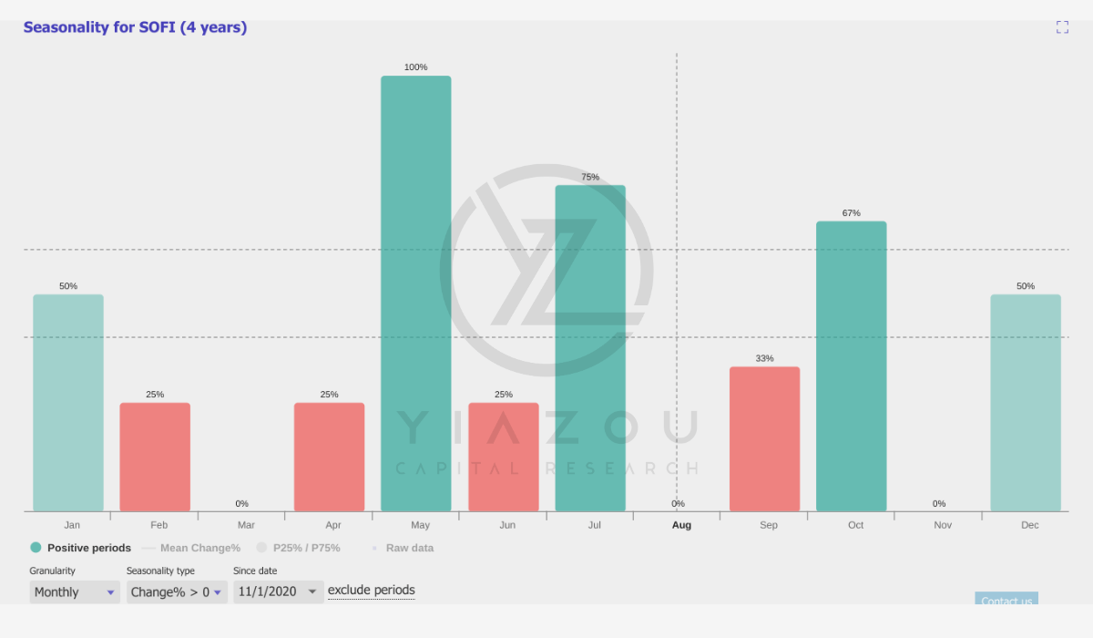 However, caution is warranted in the near term due to historical seasonality trends suggesting limited gains in August. Thus, SoFi remains a promising, albeit cautious, long-term buy.