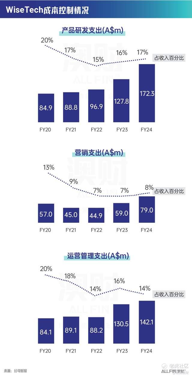 其次,WiseTech因爲本身在軟件流程自動化上的技術優勢,其公司整體運營流程方面也優於同行,運營效率高。長期以來WiseTech一直專注於控制成本、不盲目燒錢,並優化運營槓桿,在此基礎上,2024年還實現了4000萬澳元的成本節約計劃,所以最終我們看到了EBITDA利潤率在四季度來到了歷史性的50%。