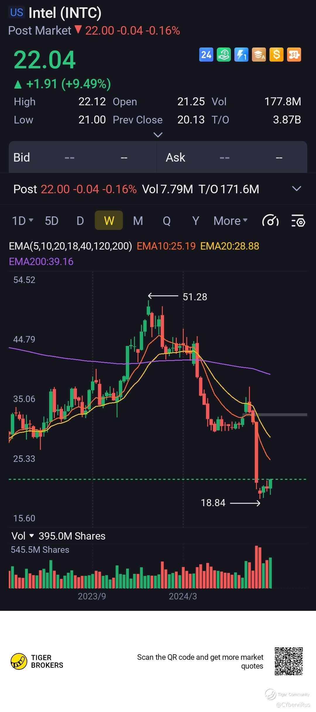 $Bilibili Inc.(BILI)$ $Intel(INTC)$ share price have formed a bullish engulfing candle in recent trading session, indicating sign of strength. Their share prices are possible of moving higher.