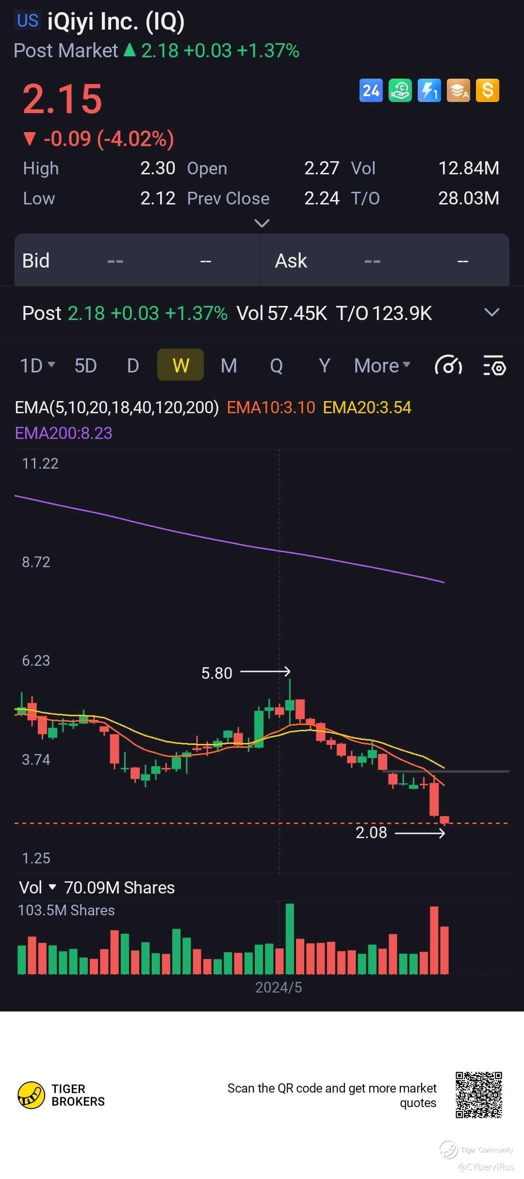 $iQiyi Inc.(IQ)$ has experienced a 4 consecutive weeks down moves, which has exceeded its one standard deviation price runs. In order to break the sequence, it is possible that the price will move higher.