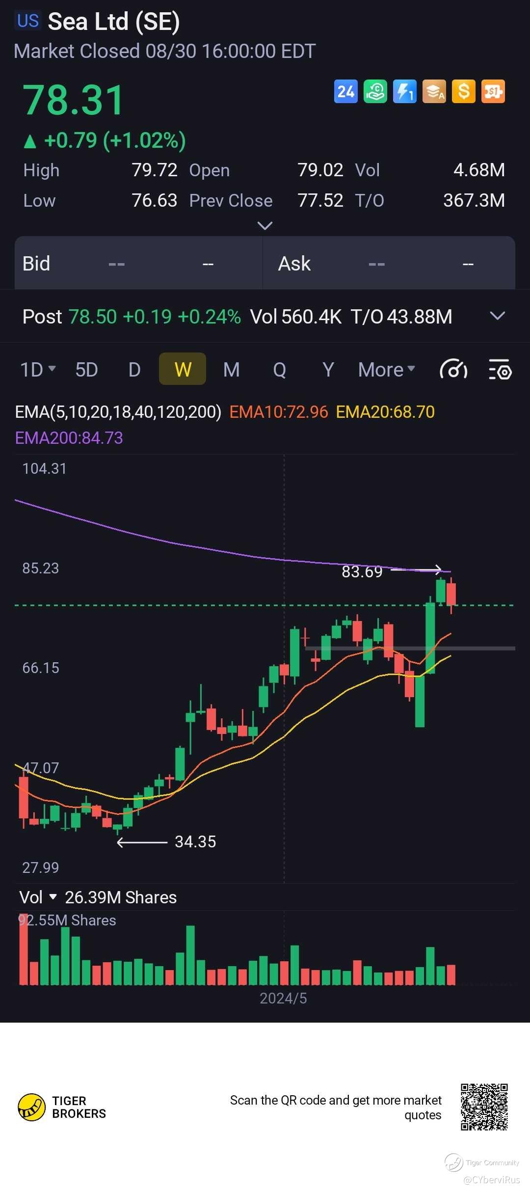 $PDD Holdings Inc(PDD)$ $Palantir Technologies Inc.(PLTR)$ $Sea Ltd(SE)$ $Nasdaq100 Bull 3X ETF(TQQQ)$ share prices have formed a swing high in recent price movements.