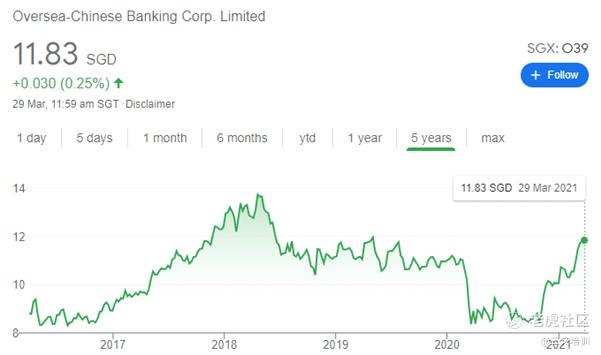 $華僑銀行(O39.SI)$ 是 2021年初迄今排名第 8的績優新加坡藍籌股,回報率上漲 17.3%。與星展類似,華僑銀行也是利率上漲積極情緒的主要受益者。