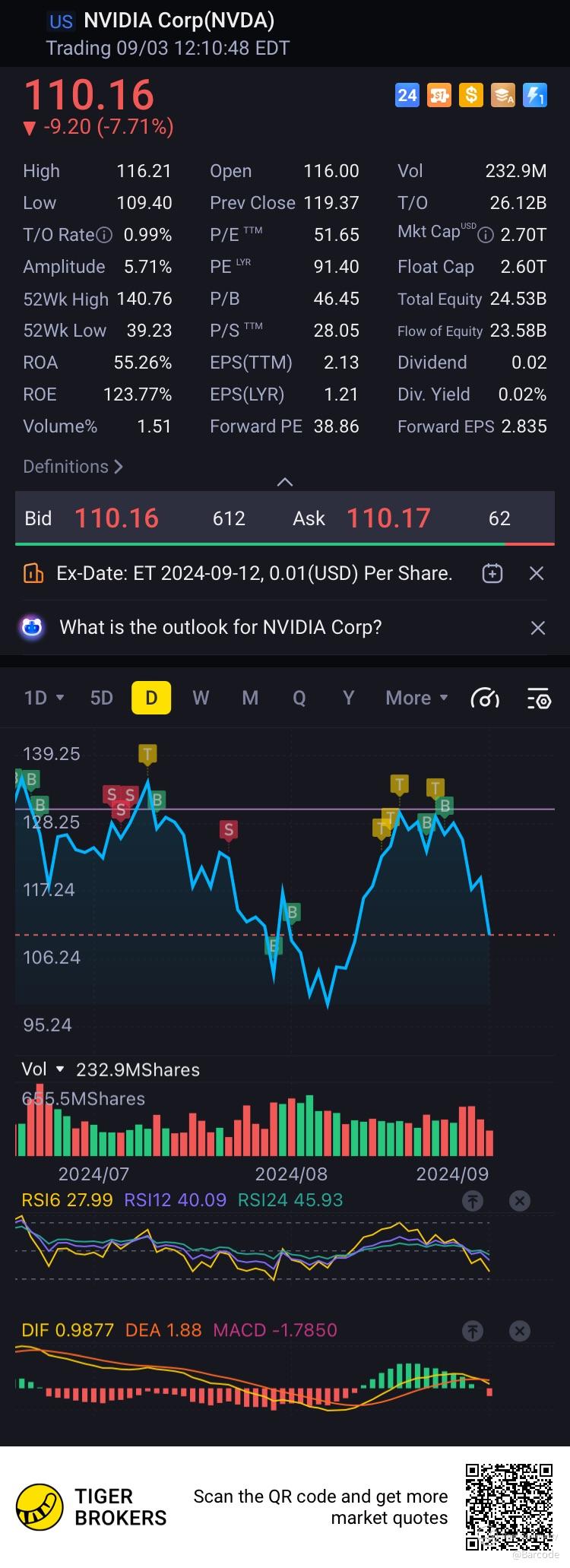 ๐ Whatโs your take on NVDAโs wild ride today? Is this a one-off stumble, or should we brace for a new trend in the semiconductor sector? There aren't many buyers coming in @TigerGPT
