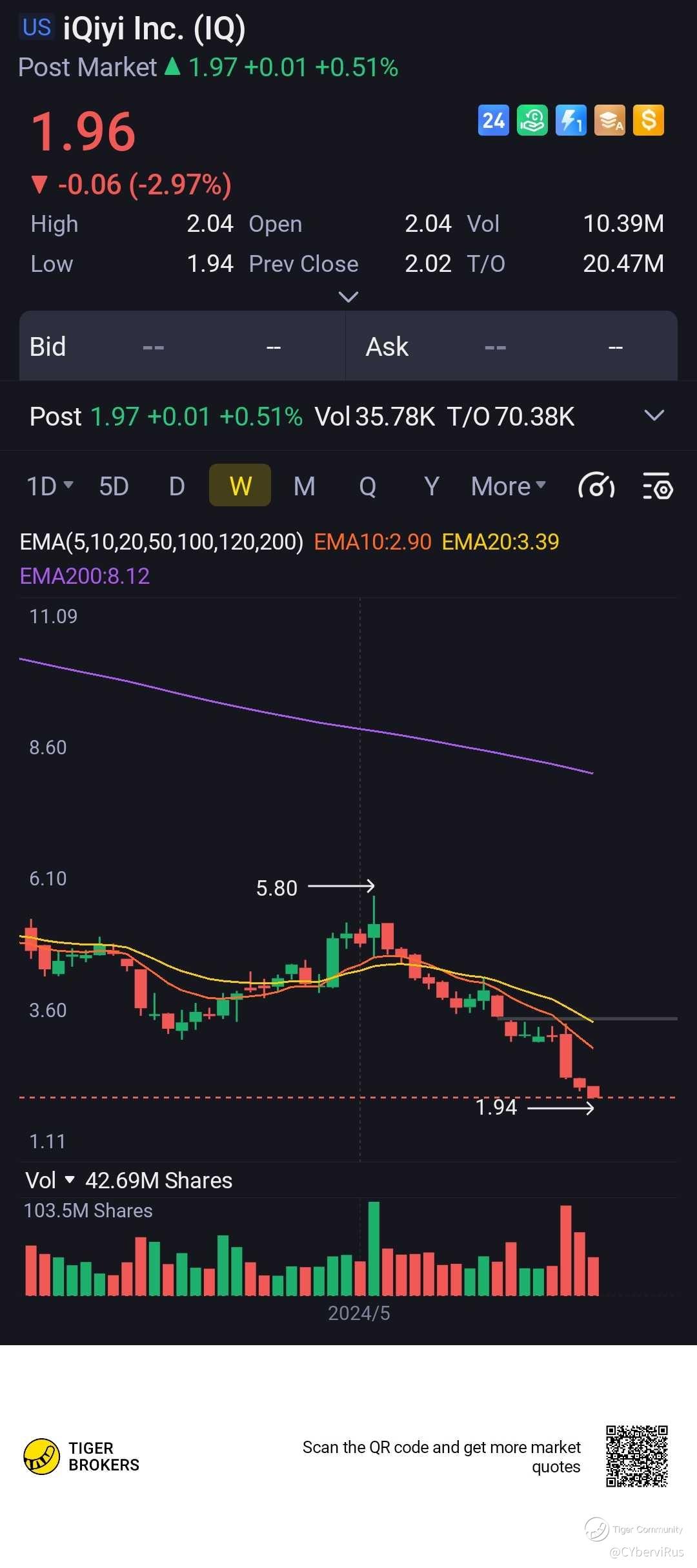 $iQiyi Inc.(IQ)$ has experienced a 5 consecutive weeks down moves, which has exceeded its one standard deviation price runs. In order to break the sequence, it is possible that the price will move higher.