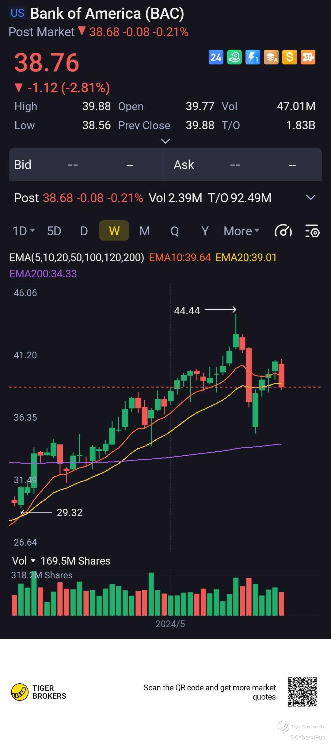 $Bank of America(BAC)$ $Wells Fargo(WFC)$ share price have formed a bearish engulfing candle in recent trading session, indicating sign of weakness. Their share prices are possible of moving lower.