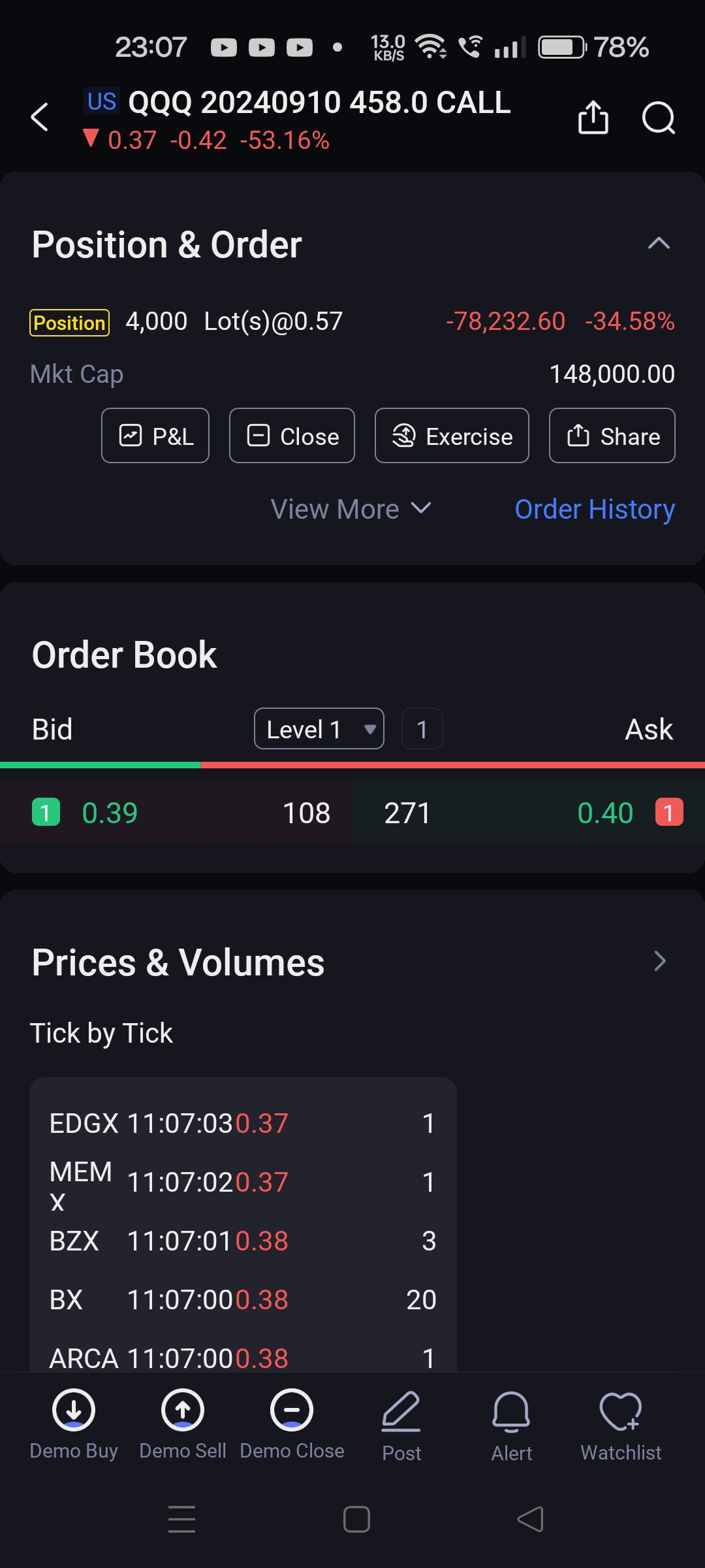 Today I try demo with QQQ Option.