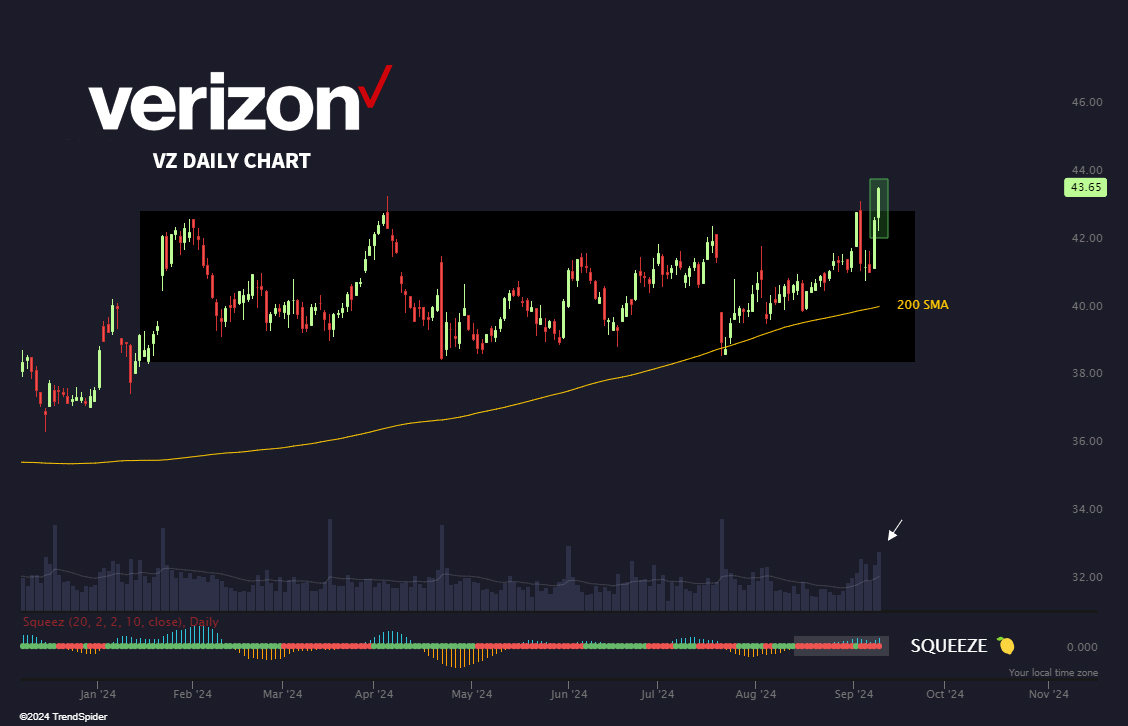 $Verizon(VZ)$ Verizon breaking out of a +7 month consolidation with authority today...