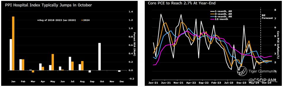 · Looking forward, October's core PCE is expected to rise more quickly than the roughly 0.17% average of the past two months due to adjustments in medicare reimbursement rates, which should push up health-care costs.