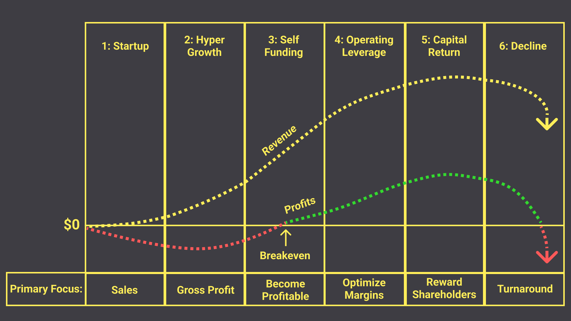 Management teams focus on different goals during the business growth cycle.
