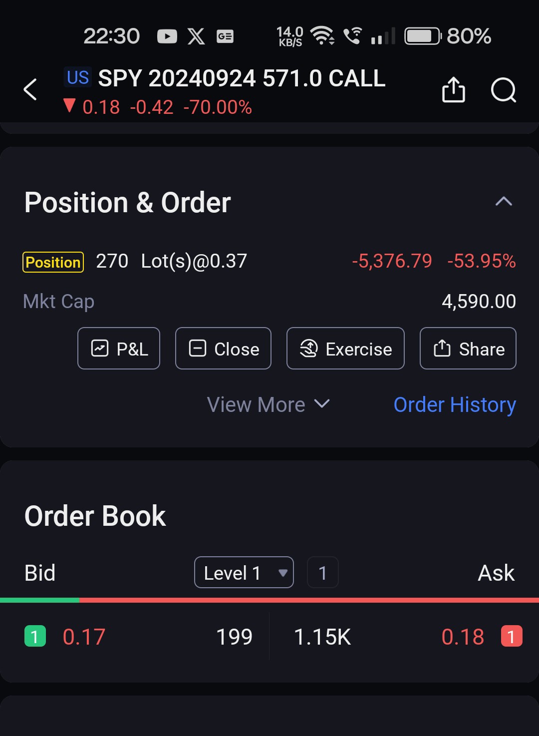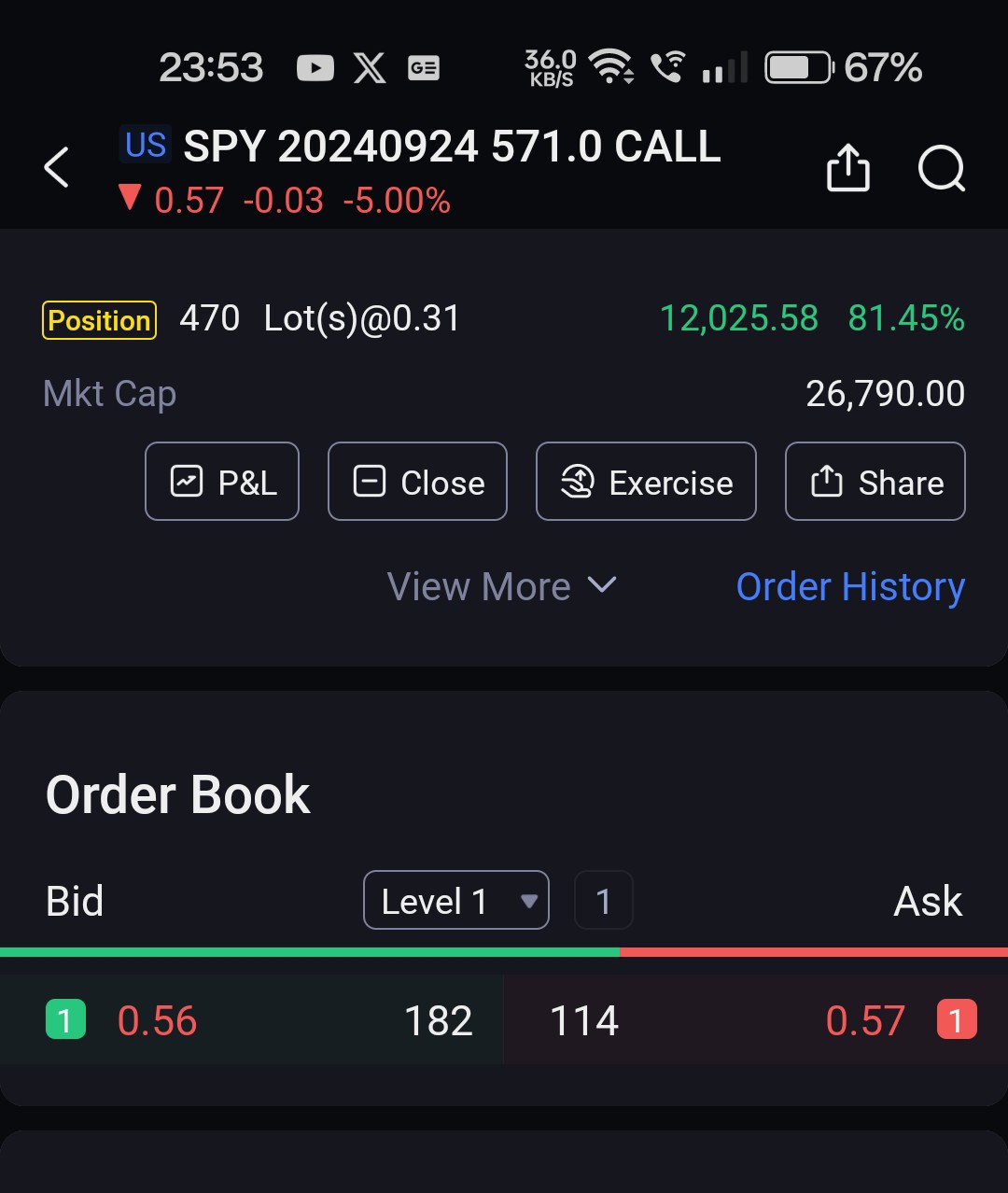 Been learning Option for about 1.5years. Keep opening my eyes in option trading. Stock Investor and Daily Option Trader are two different game player, respect that. Different ball game, different mind game. Today I started with 5k into $SPY call since market open up. Max out at 1st 3mins and market going down south, got burn out by hold hope. Then 10 o'clock DCA another 5k. Still market heading south.... Market started turning at 10:43.By 11 o'clock I DCA again 5k. Sold my holding at 11:53. I was still down 6k on 1st DCA. Market turn around and I managed to turn GREEN. Yes, on Demo Account still I am gauging my skill. Yesterday ideology doesn't applied today, YET, I managed to learn how to DCA. How you might ask. Bigger account (duh...). BEST still I have met great guru to learn. Investor or Traders, just be mindful while you trade.