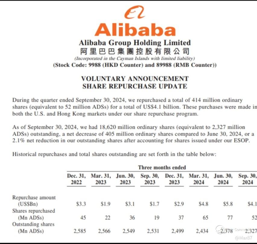 $Alibaba(BABA)$ Base on this Share Repurchase Update (Oct 2nd), it's pretty clear that management has repurchased 353 mln ADRs (for a whoppin...USD 27.6Billion!!?) corresponds to 13.66% outstanding shares on a non-dilutive count since Dec'22 quarter which coincides with 2 years duration since start of share repurchase program.