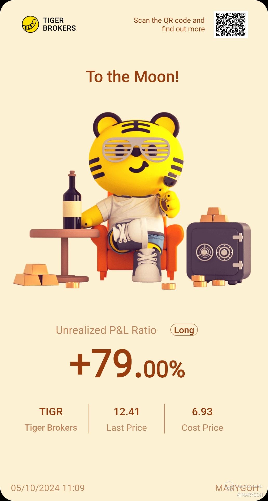 $Tiger Brokers(TIGR)$ Been holding for 3 years. Finally the colour changed from red to green. Please keep on moving upward...tq [Miser] [Heart]
