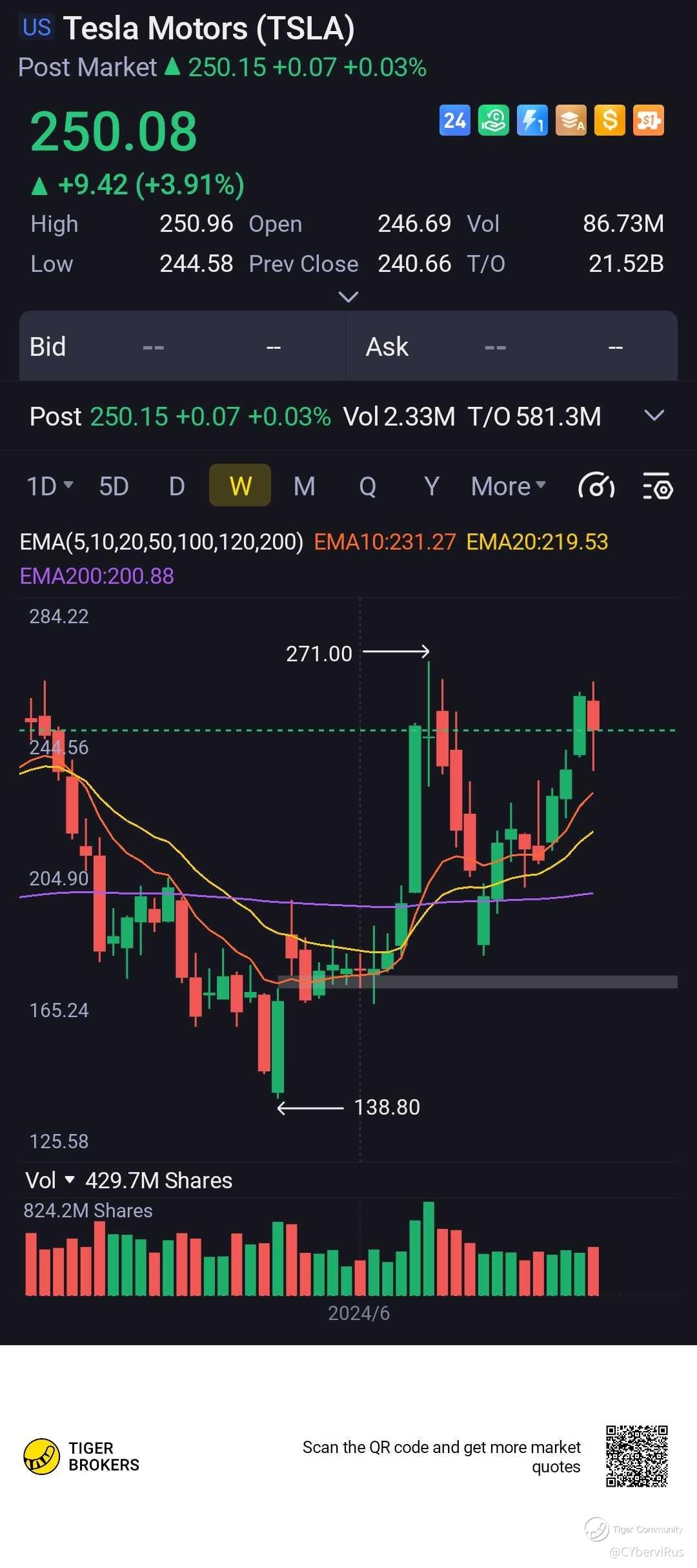 $Tesla Motors(TSLA)$ share price has formed a bearish engulfing candle in recent trading session, indicating sign of strength. Their share prices are possible of moving higher.