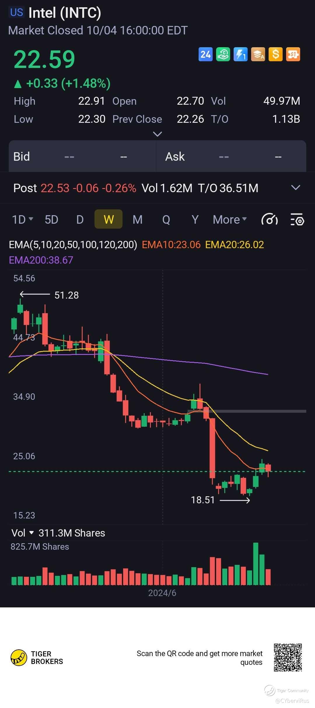 $Intel(INTC)$ $Roblox Corporation(RBLX)$ $Taiwan Semiconductor Manufacturing(TSM)$ share prices have formed a swing high in recent price movements.