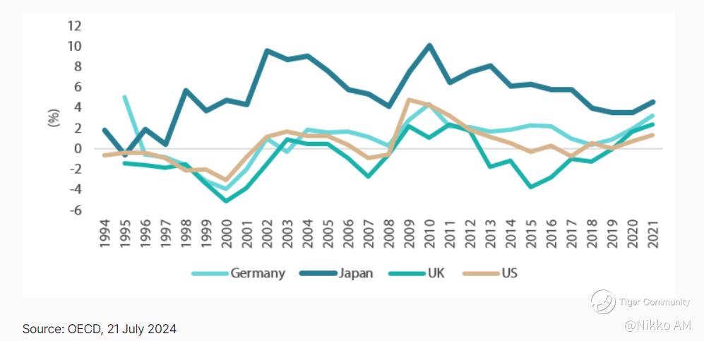 With its firms having held a higher amount of savings than those in other developed economies over the past three decades (Chart 1), Japan can be described as a country of “cash-rich” companies. As with many aspects of Japan’s economy, the bursting of the asset bubble in the 1990s played a significant role in shaping corporate behaviour. After the bubble burst, Japan entered a long period of economic stagnation during which corporate investment slowed. Company profits were instead channelled into savings, turning many of them into net holders of cash.