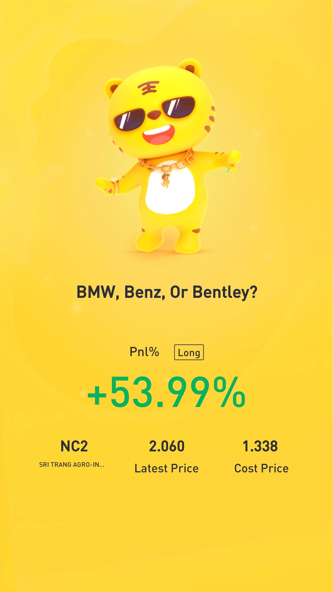 $SRI TRANG AGRO-INDUSTRY PCL(NC2.SI)$didn't buy it when it's the lowest. but glad that i held through the up and downs.