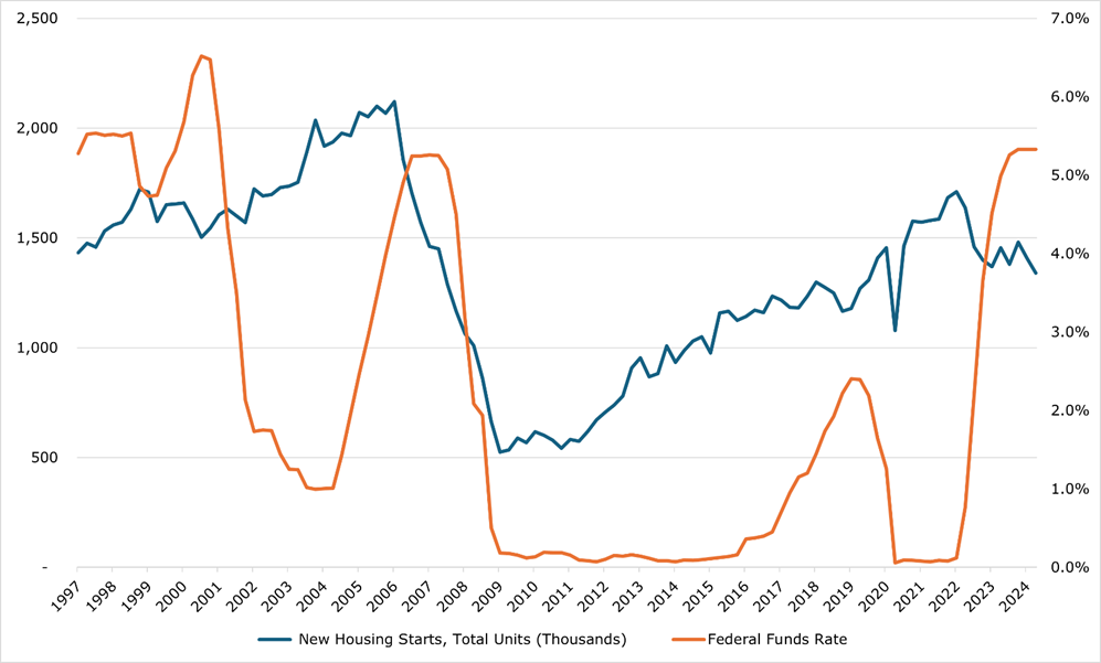 As previously discussed, real estate starts have hit cyclical lows. We believe that as consumers and developers price in interest rate decreases, housing starts will increase in tandem.