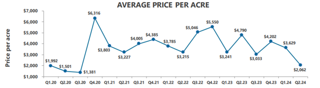 For the quarter ending June 2024 the West and North regions saw higher price realizations on a year-over-year basis, with the South remaining flat. The South and West had slightly better volumes thanks to favorable weather conditions.