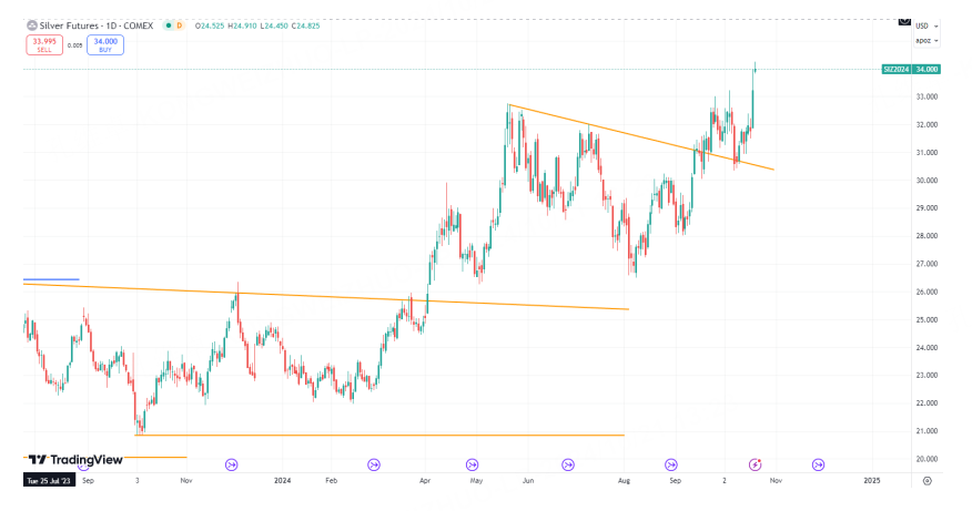 Going back to gold itself, the ending wedge we previously guessed is still running in the channel, which means that there is still some space and time for gold prices, but it is also difficult to extend more at the point in time. The final result of the US election will clarify the arrival of the top: Trump's election means that at least one or two varieties in the troika will quickly peak and reverse.