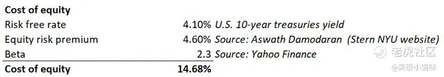特斯拉之所以成爲全球市值最高的汽車製造商,主要是憑藉其在疫情期間的激進收入增長。因此,DCF模型是評估這隻股票最合適的方式。特斯拉總計120億美元的債務相較於其7000多億美元的市值而言微不足道,因此股本成本最適合作爲折現率。