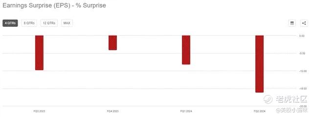 好的一面是,預計收入增長將繼續加速,特別是在前三個季度較爲艱難的情況下。然而,EPS預期下滑對於股東財富來說是不利的。此外,特斯拉在過去四個季度中的每股收益預期均未達標,並且差距相當大。