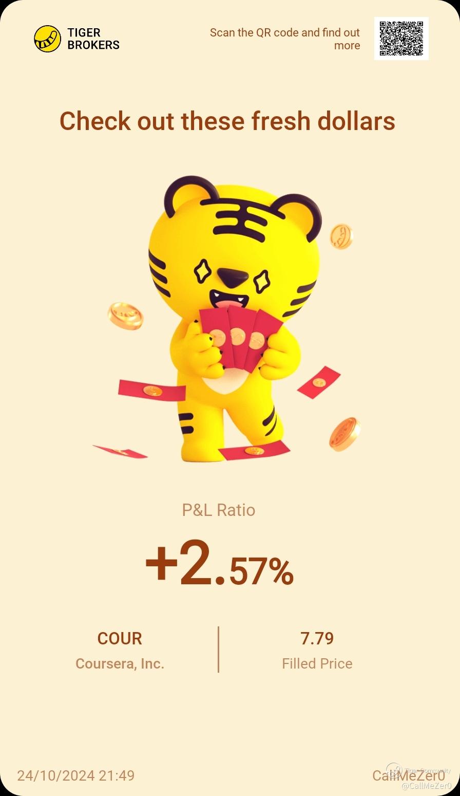 Closed $Coursera, Inc.(COUR)$ as I know will go down later tonight, will buy back lower for earnings