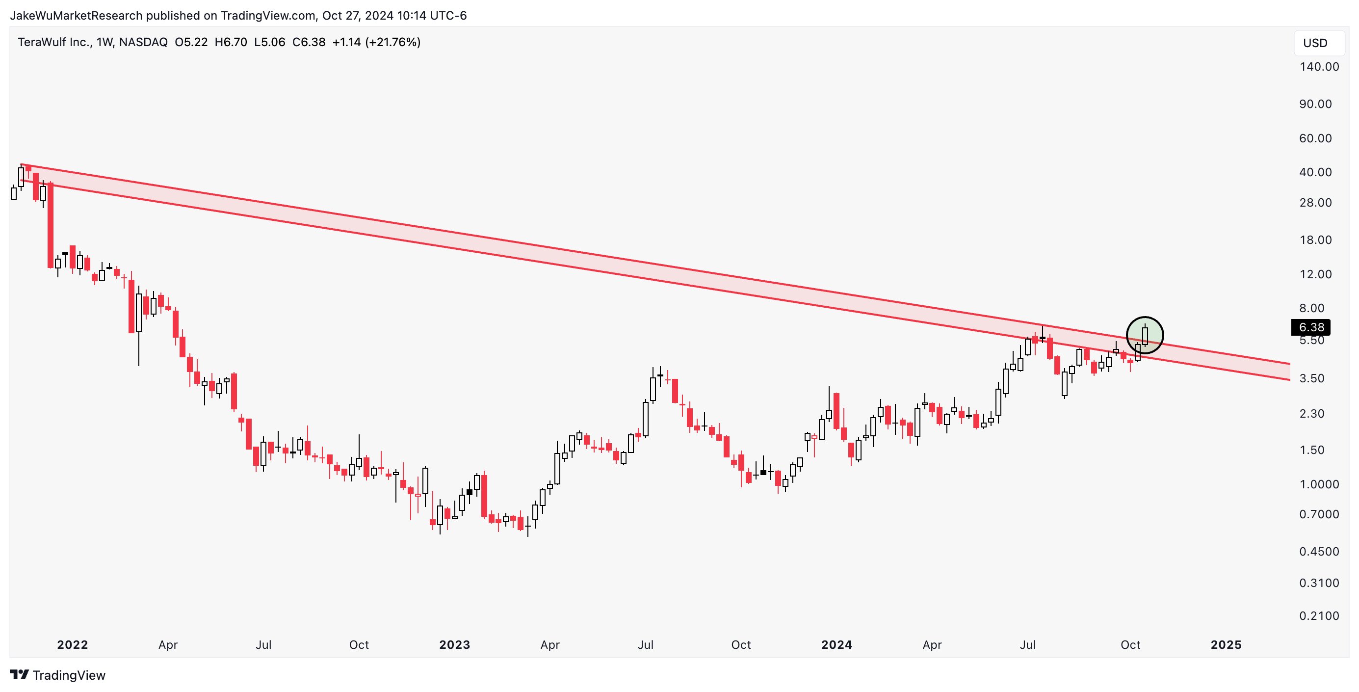 $TeraWulf Inc.(WULF)$ Strong breakout this week through the diagonal trend zone.