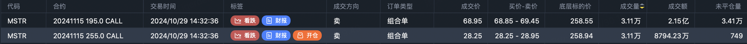 Similarly in MSTR, 31,100 November $255 calls were accumulated: