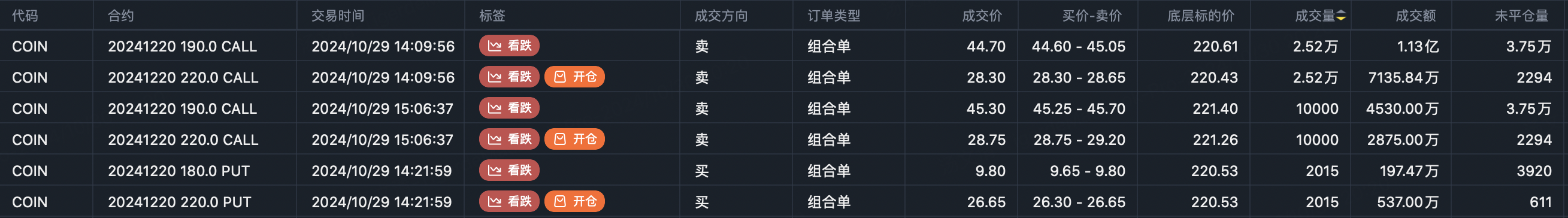 In COIN, there was a 35,000 contract roll up into the December $220 calls:
