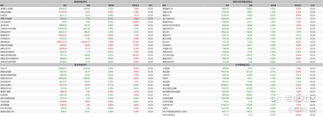 最近這一週的市場表現,讓年後的元寶們感受到了所謂的需要對市場充滿敬畏之心。本週,受美國國債收益率飆升的影響,全球主要資本市場均收報大幅下跌。給元寶們來張圖,感受下全面下跌的力量: