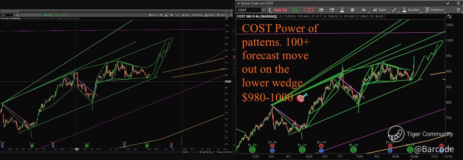 โข Chart Insight: Costcoโs got the power of patterns โ check out the forecasted breakout in the image! ๐ Analysts are watching a potential move from the lower wedge, setting up COST for a run towards the $980-1000 range. Loyal members, savvy traders โ could COST be the next stock MVP?