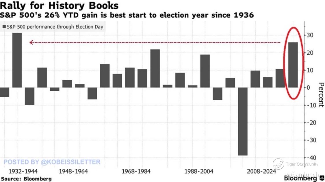 BREAKING: S&P 500 is now up 26% year-to-date, on track to post its best election year in 88 years.