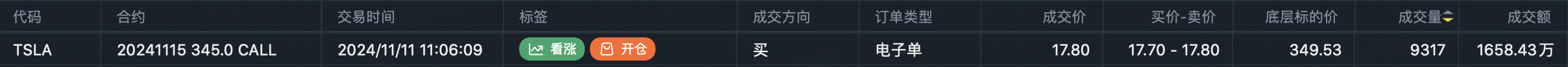Close $TSLA 20241115 345.0 CALL$