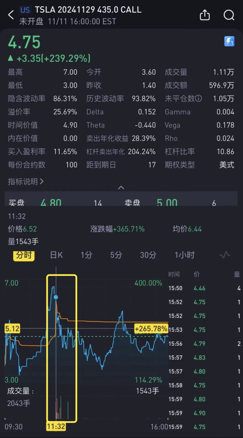 TL;DR: The uptrend is likely to end within November, with a chance of further upside but expecting a 2-day pullback. Key focus on the November 29th $435 calls ($TSLA 20241129 435.0 CALL$ ).
