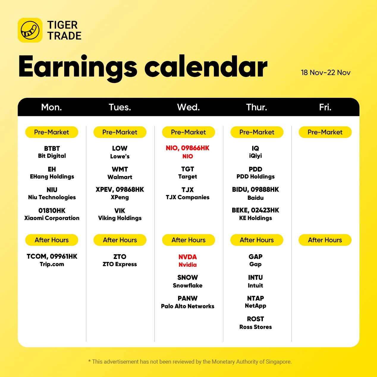 3.Companies like $XIAOMI-W(01810)$ $XPENG-W(09868)$ $NIO-SW(09866)$ $KUAISHOU-W(01024)$ are scheduled to release their earnings next week.