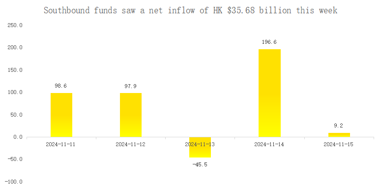 Southbound funds saw a net inflow of HK $35.68 billion this week.