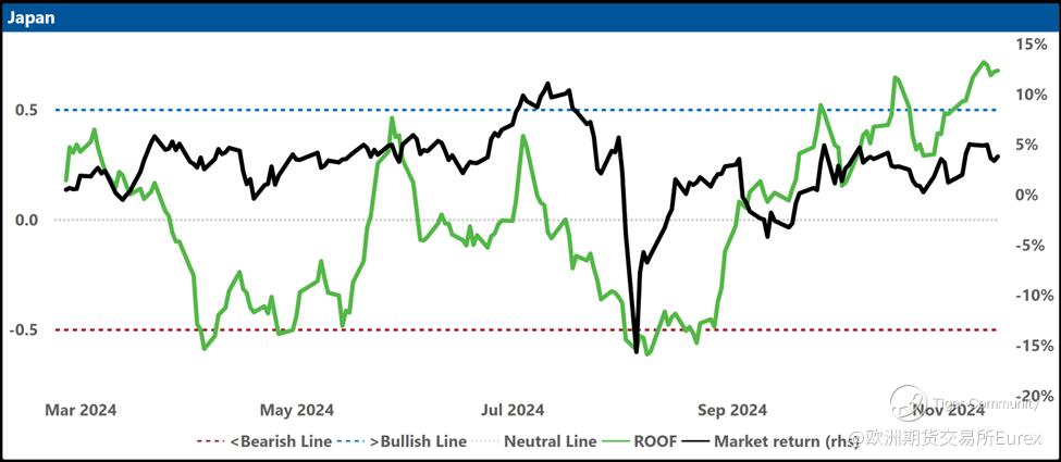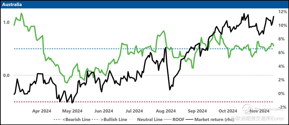 Investor sentiment declined last week across all markets we monitor as investors globally reassess the implications of a second Trump presidency for everything from the strength of the USD, monetary policy, global trade, and their own markets. Only investors in Australia and Japan managed to maintain their recent optimism, though without further gains. The weakening Yen against the US dollar and the perception that Japan will benefit from the US’s trade policy of decoupling supply chains from China under the Trump administration continue to boost sentiment among Japanese investors.