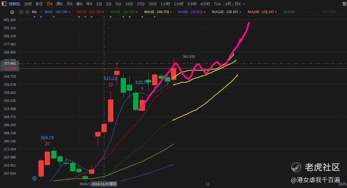 特斯拉上週五在MA10附近反彈3%,週一再漲5%,日線V字反彈,週五突破350美元后橫盤,K線形態很強勢,只要在這個位置站穩,下一個目標就是380和400美元。重要支撐336美元,跌回去的話就要橫盤一段時間$特斯拉(TSLA)$