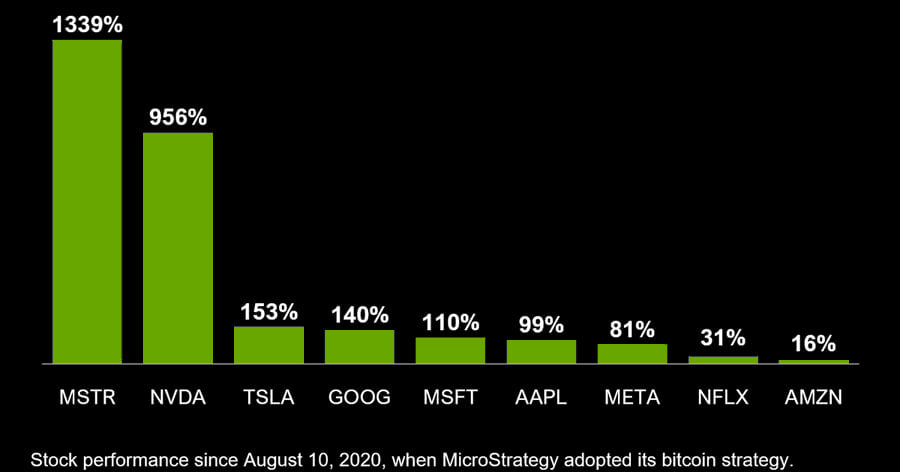 Big technology stocks performance since $MicroStrategy(MSTR)$ start buying Bitcoin on 2020.