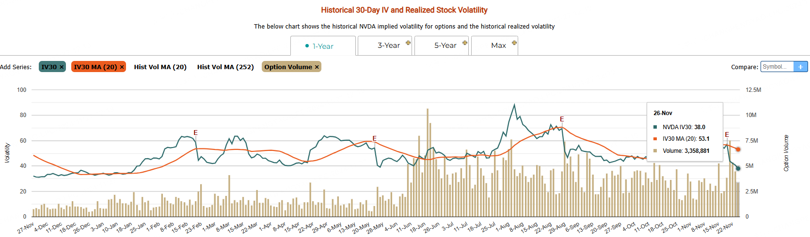 Investors may consider these strategies to capitalize on NVIDIA's current low implied volatility, especially if expecting increased price movement or volatility in the future.