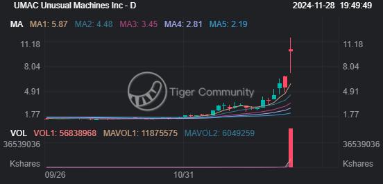 In the past five days, drone manufacturer $Unusual Machines Inc(UMAC)$ surged by 155%.