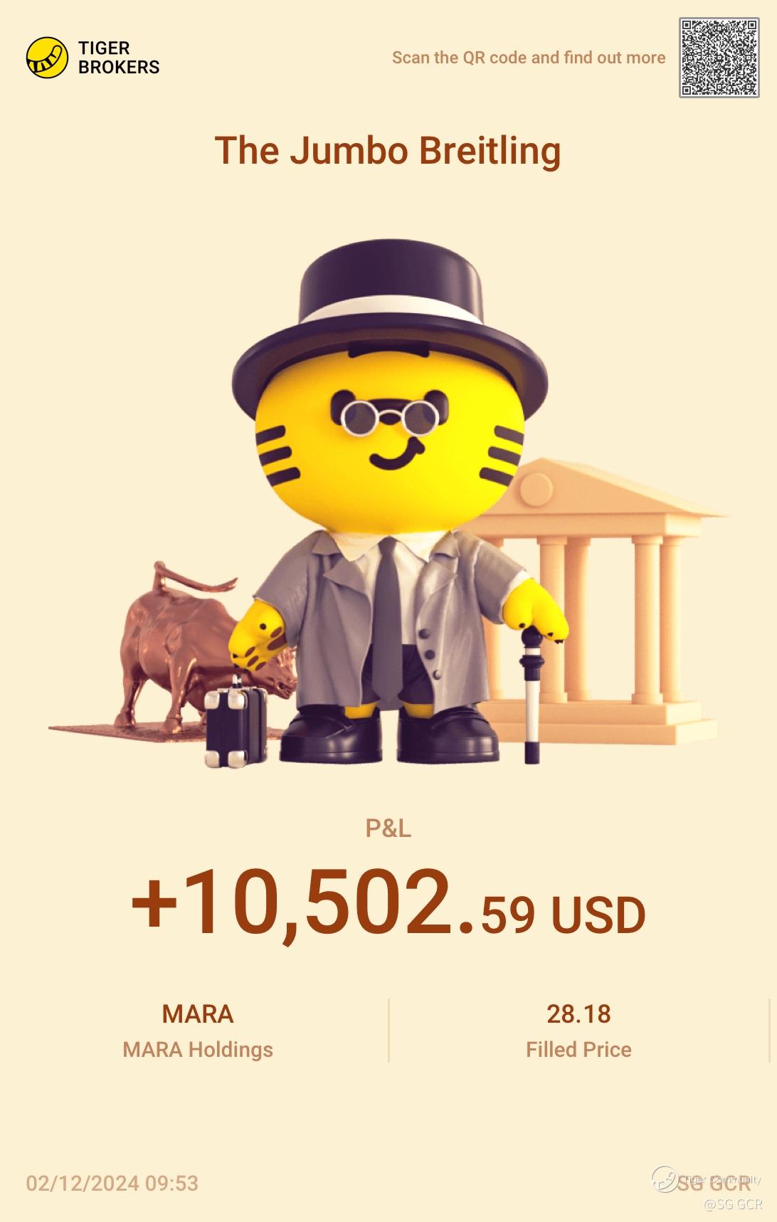 $MARA Holdings(MARA)$ Took more profits. 9000 shares left. Somehow feel that BTC will flush soon. Dino coins like $XRP shooting up is usually not a good sign