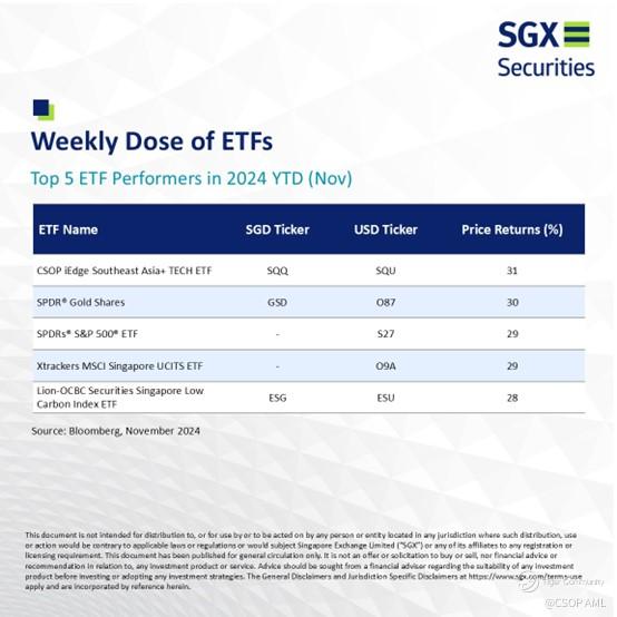 With a 31% price return, $CSOP SEA TECH ETF S$(SQQ.SI)$ / $CSOP SEA TECH ETF US$(SQU.SI)$ becomes the best ETF performer in 2024 YTD(NOV) at SGX[1]. SQQ/SQU has also garnered significant attention from investors in China. As of Decmber 4th, the total NAV of CSOP iEdge Southeast Asia + Technology Index ETF reached 240 million USD.[2]