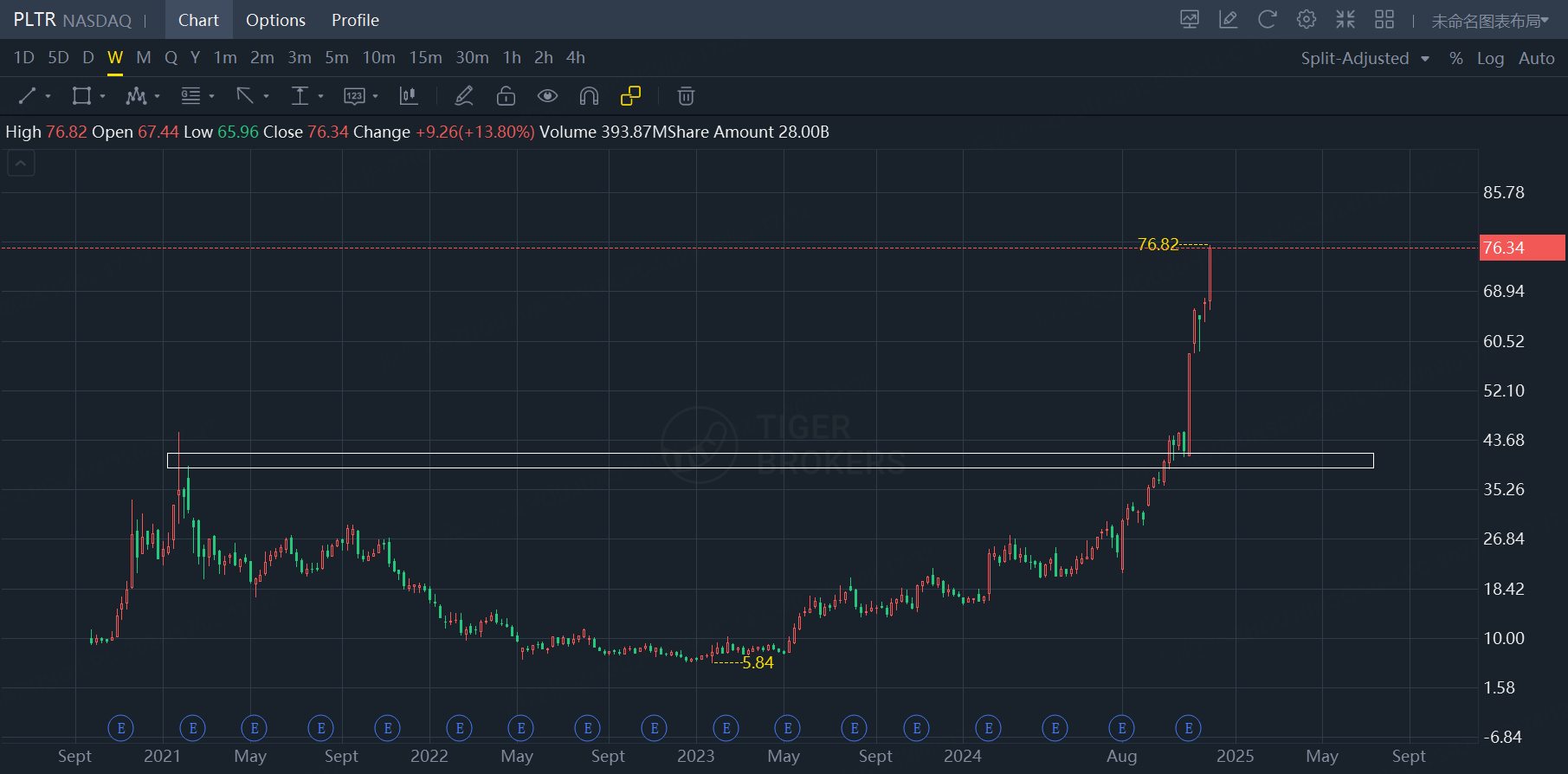 $Palantir Technologies Inc.(PLTR)$ still shows incredible strength moving from ATH to new ATH every week since November despite FUD of people calling it a bubble, but its not.